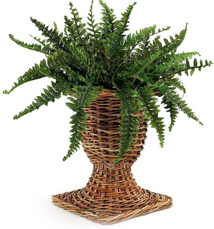 Versatile in which types of plants it will hold, a French Country rattan urn is among the classic shapes for indoor displays. Bold reed weaving with natural color variations provides a backdrop for greenery or bright blooms, and the interior large sizing can accommodate pots up to ten inches in diameter. The seamless large urn design features a squared base that is sized for placement on matching pedestals, on smaller accent tables and on floors. In summer months, a rattan urn can be a beautiful addition in front of empty fireplace hearth, and urns make stunning additions for seasonal arrangements as well. Choose a single rattan urn planter and pair with matching French basketry, or select a pair for symmetrical placement on console tables or near front entries.