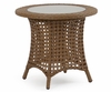 Extra amenities for outdoor living groupings are always important, and the Susannah end table is a perfect accompaniment to sofas, lounge chairs and loveseats from this patio collection. A round top with wide, densely woven lip features inlaid glass, and the attached base is shapely with its interlocking pattern that provides a decorative surround flowing seamlessly into fully wrapped legs. Resin strands, which mimic natural rattan core fibers, are dyed through and treated for resistance to fading and water damage. Framing is powder coated aluminum with welded joints that make this accent piece lightweight and exceptionally sturdy. In sunny spots or protected areas, the Susannah side table will find many convenient uses for everyday gatherings and entertaining.