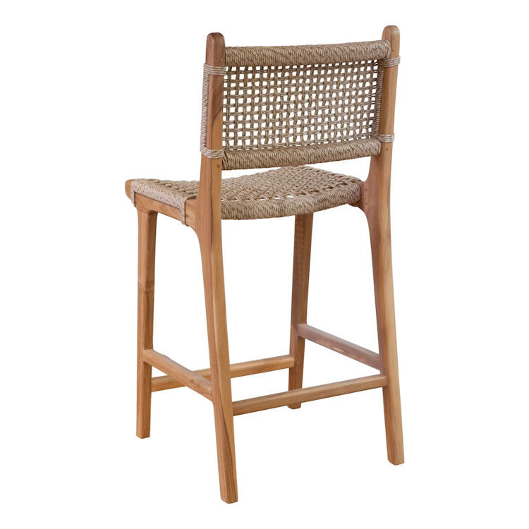 Our natural finished woven teak counter stool will fit in well with any type of kitchen decor. Constructed of durable teak and seagrass, this stool is sturdy enough for everyday kitchen use from quick breakfasts to casual evening entertaining. Strong and sturdy, this teak wood creates a frame that is striking in its simplicity. The teak frame's rich color showcases the complexly woven seat and backrest. Enjoy your breakfast, coffee, or beverage seated comfortably at your counter on this stool which is as beautiful as it is functional. The strength and durability of the teak ensures a long lasting investment that you will savor for many years to come. To complete your kitchen seating needs, combine them with woven teak dining chairs and a complementary table.